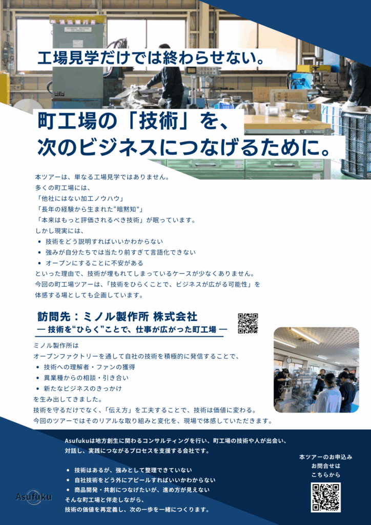 「技術をどう未来につなげるか」「これからの町工場のあり方をどう描くか」を考えている町工場の経営者・技術者にとって、多くのヒントを持ち帰っていただけるはずです。